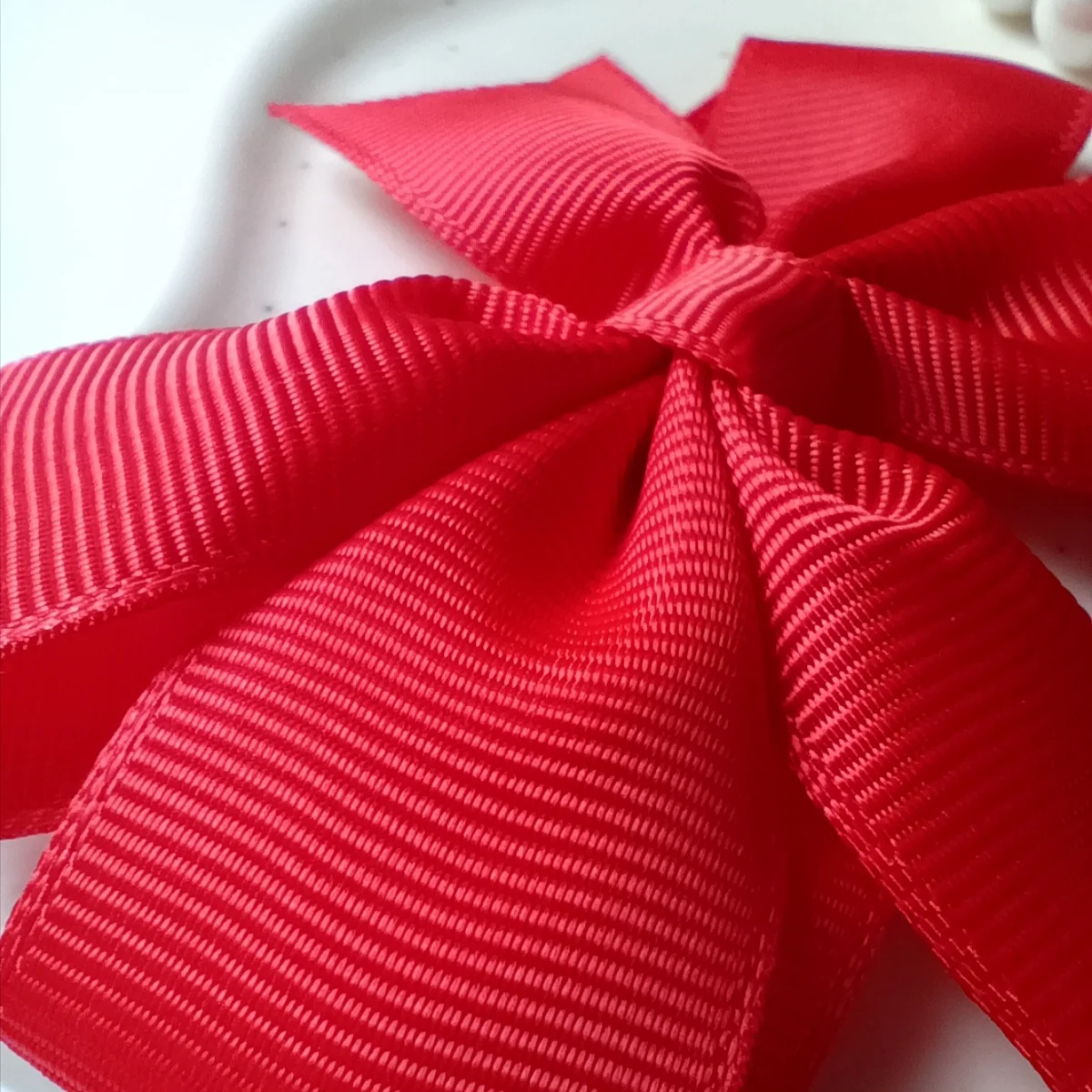 Kokarda z wstążki rypsowej o charakterystycznej, prążkowanej strukturze. Dzięki wygodnej bazie typu krokodylek dobrze trzyma się nawet na gładkich włosach, a jej wpięcie zajmuje tylko kilka sekund. Delikatne prążki subtelnie odbijają światło, dzięki czemu kokarda prezentuje się bardziej efektownie niż klasyczne, gładkie modele.