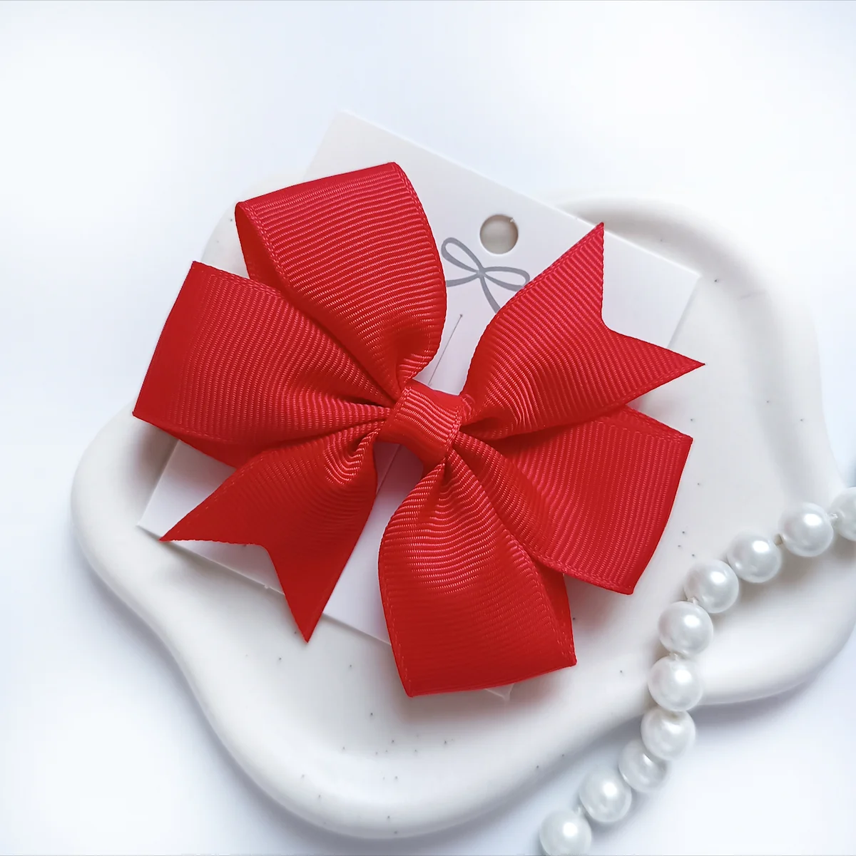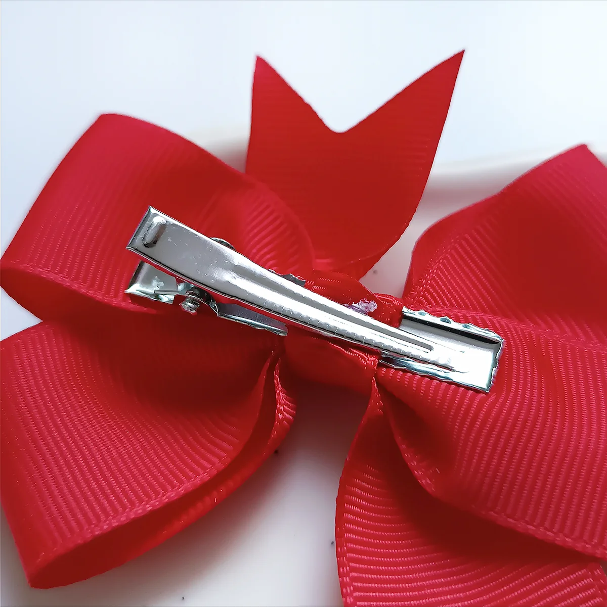 Metalowa spinka typu krokodylek zapewnia szybkie i wygodne zapinanie. Wystarczy jeden ruch, aby kokarda znalazła się na swoim miejscu i stabilnie trzymała fryzurę.