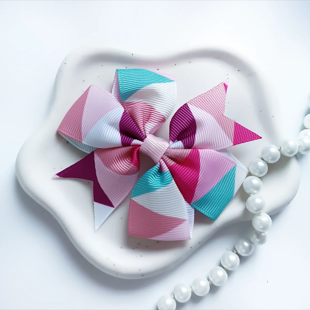 Kokarda dla dzieci ze wstążki rypsowej geometryczna kolorowa.Kokarda dla dzieci – Geometryczna