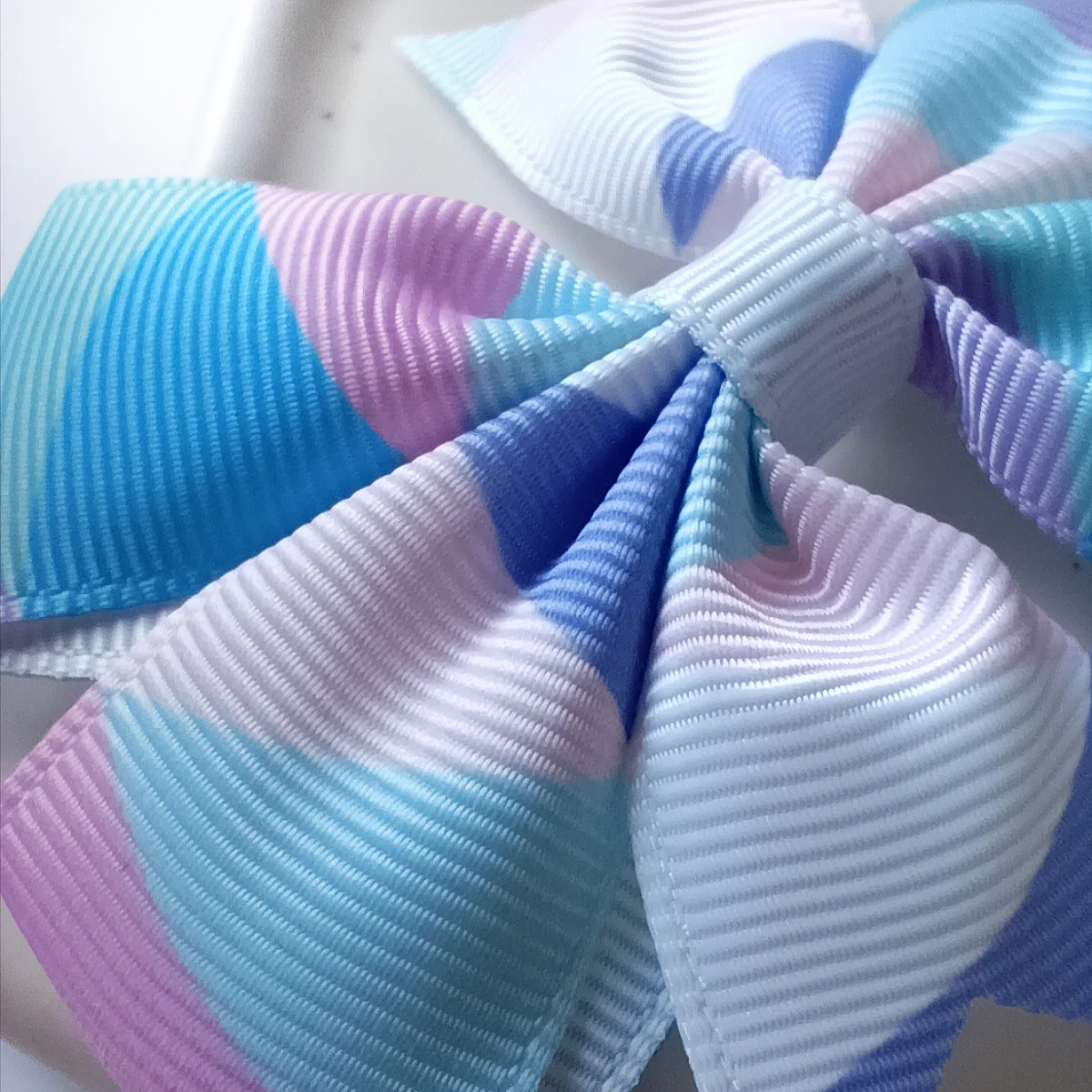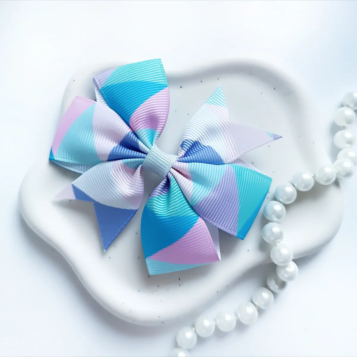 Kokarda dla dzieci ze wstążki rypsowej geometryczna pastelowa.Kokarda dla dzieci – Geometryczna
