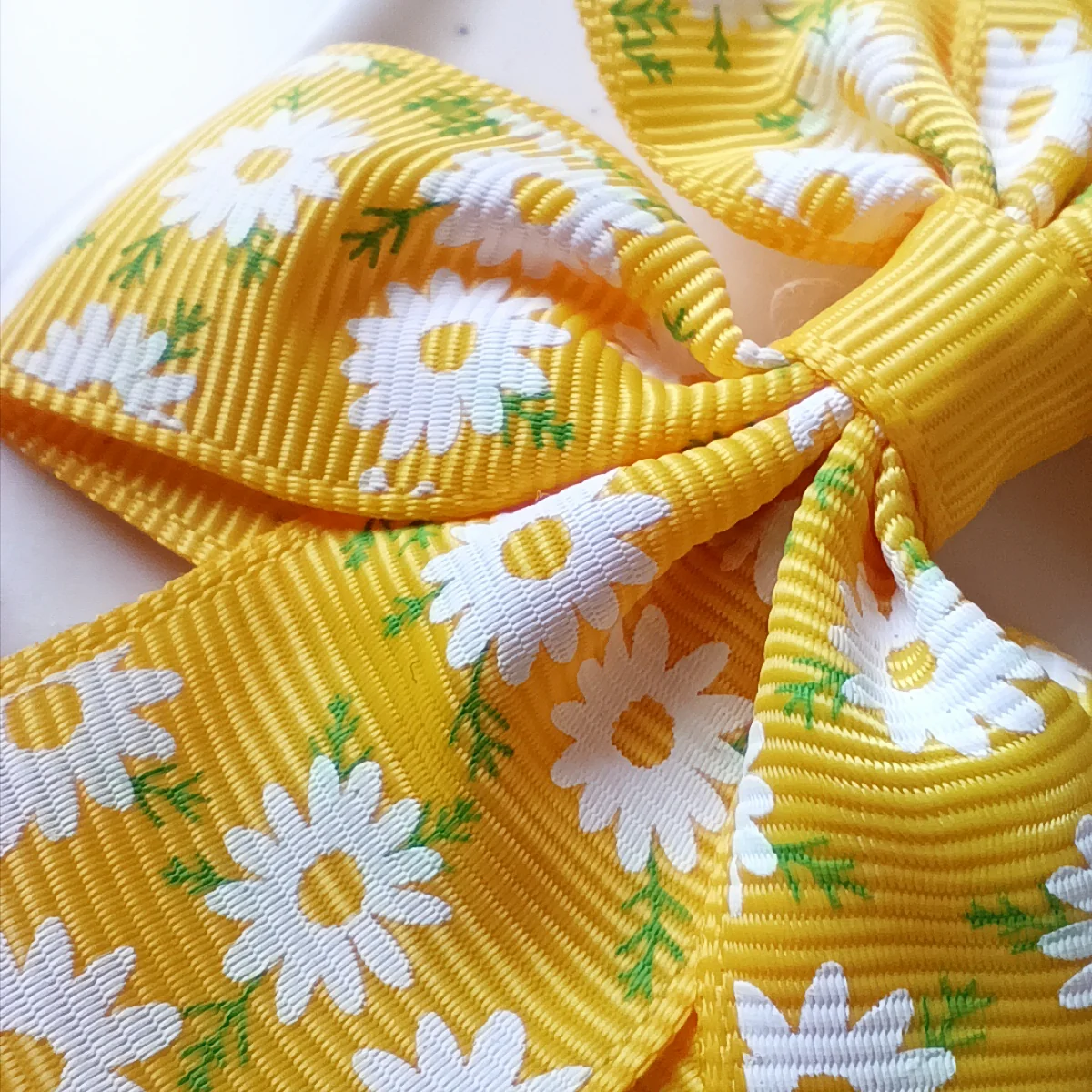 Kokarda dla dzieci ze wstążki rypsowej żółta w kwiaty.Kokarda dla dzieci – Żółta w kwiaty
