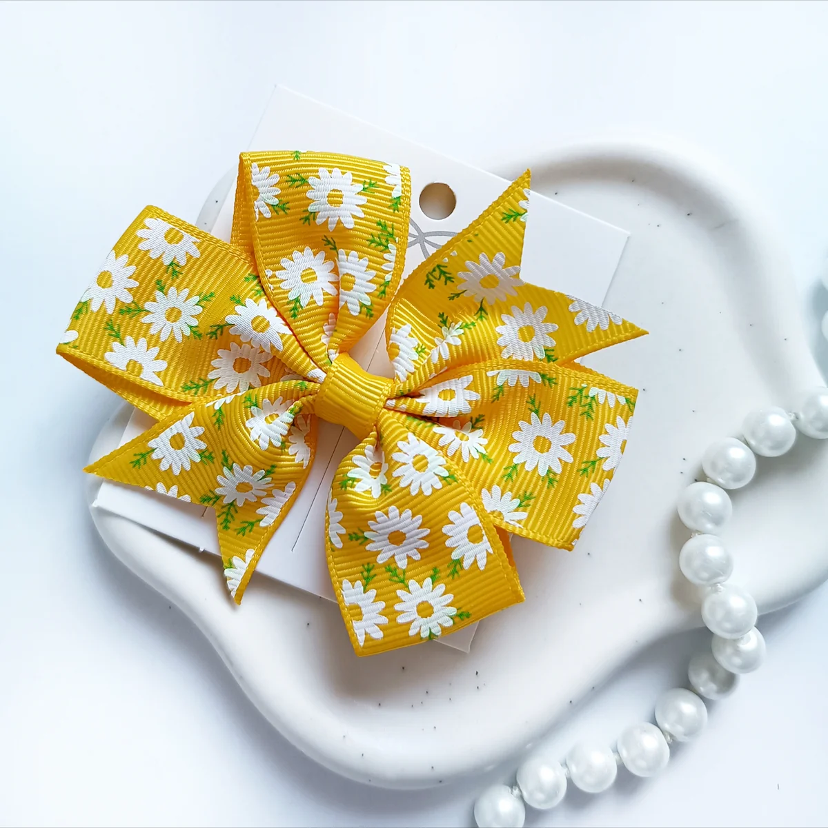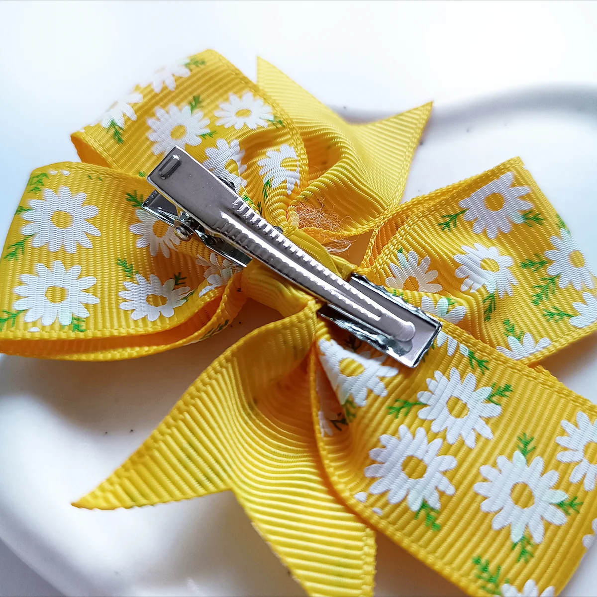 Metalowa spinka typu krokodylek zapewnia szybkie i wygodne zapinanie. Wystarczy jeden ruch, aby kokarda znalazła się na swoim miejscu i stabilnie trzymała fryzurę.