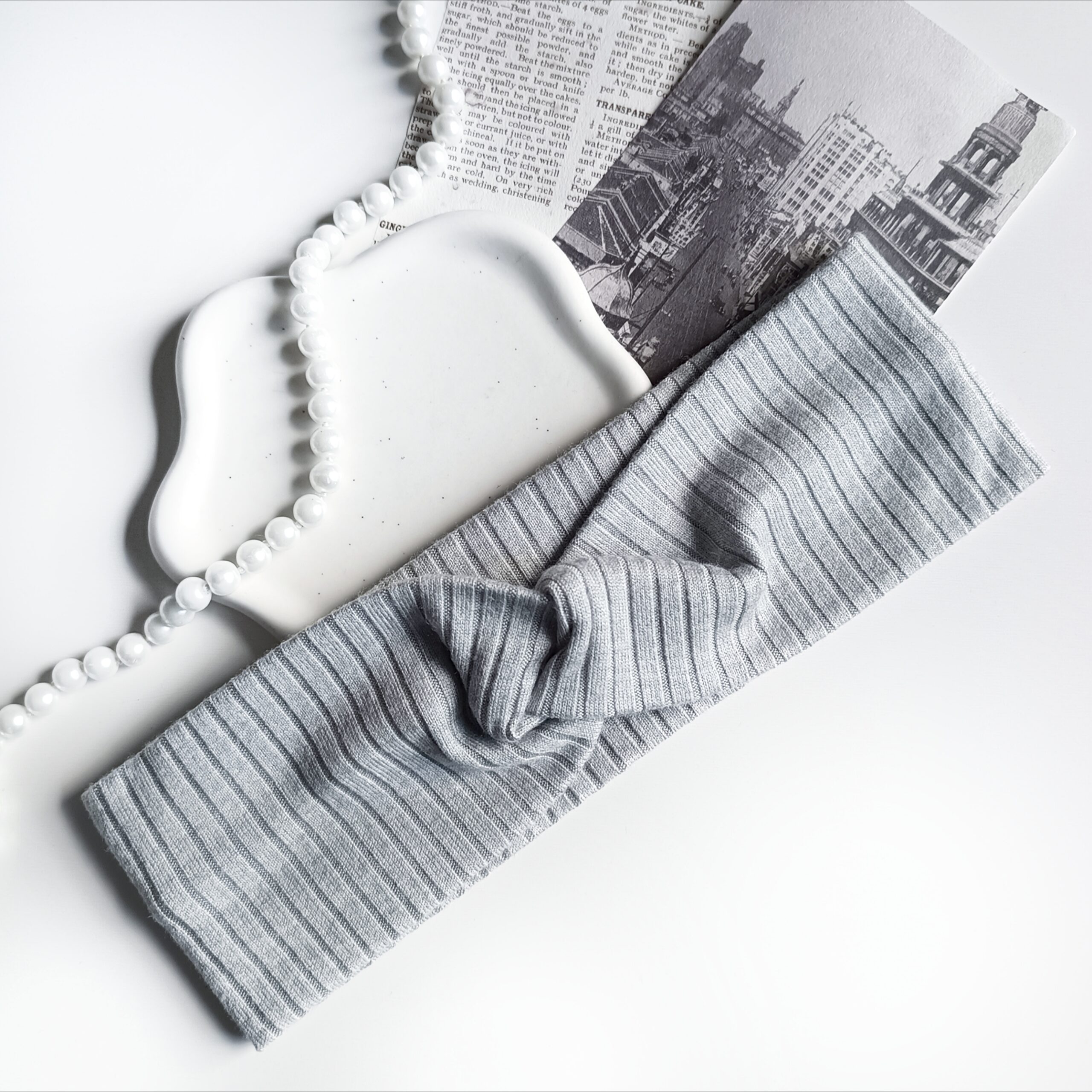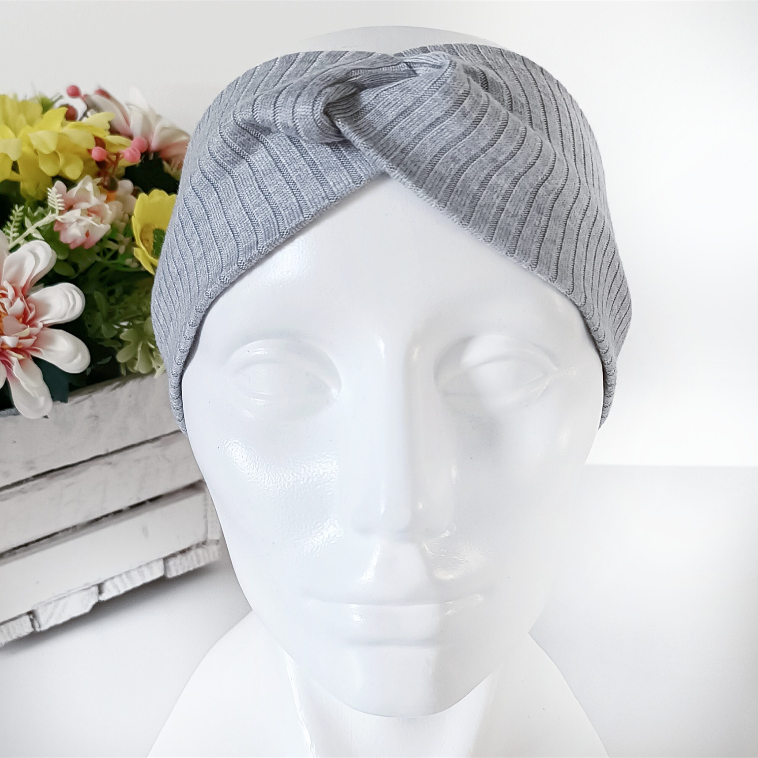 Opaska do włosów jesienna – damska – sweterkowa – szara