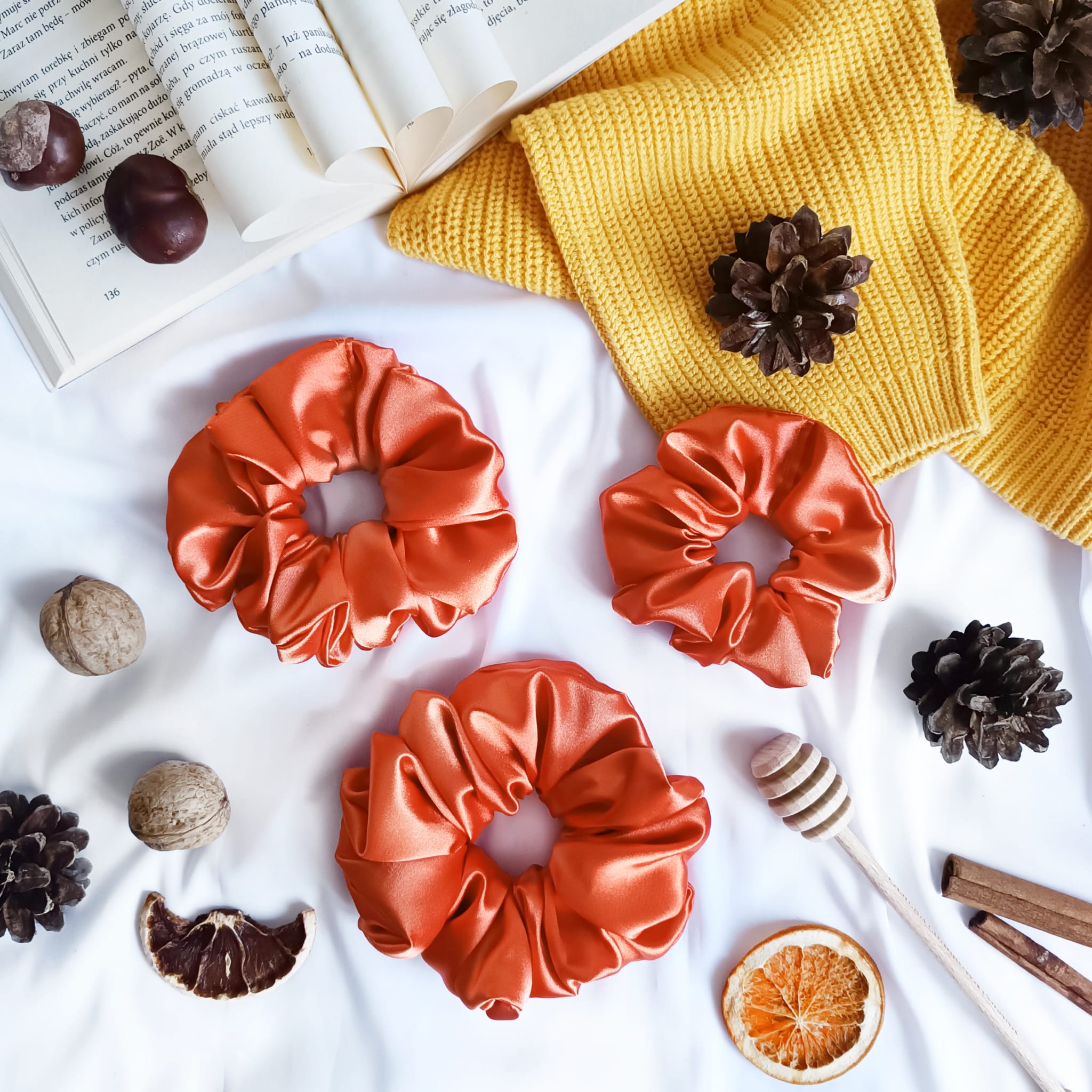 Pomarańczowa gumka do włosówScrunchie satynowa – pomarańczowa