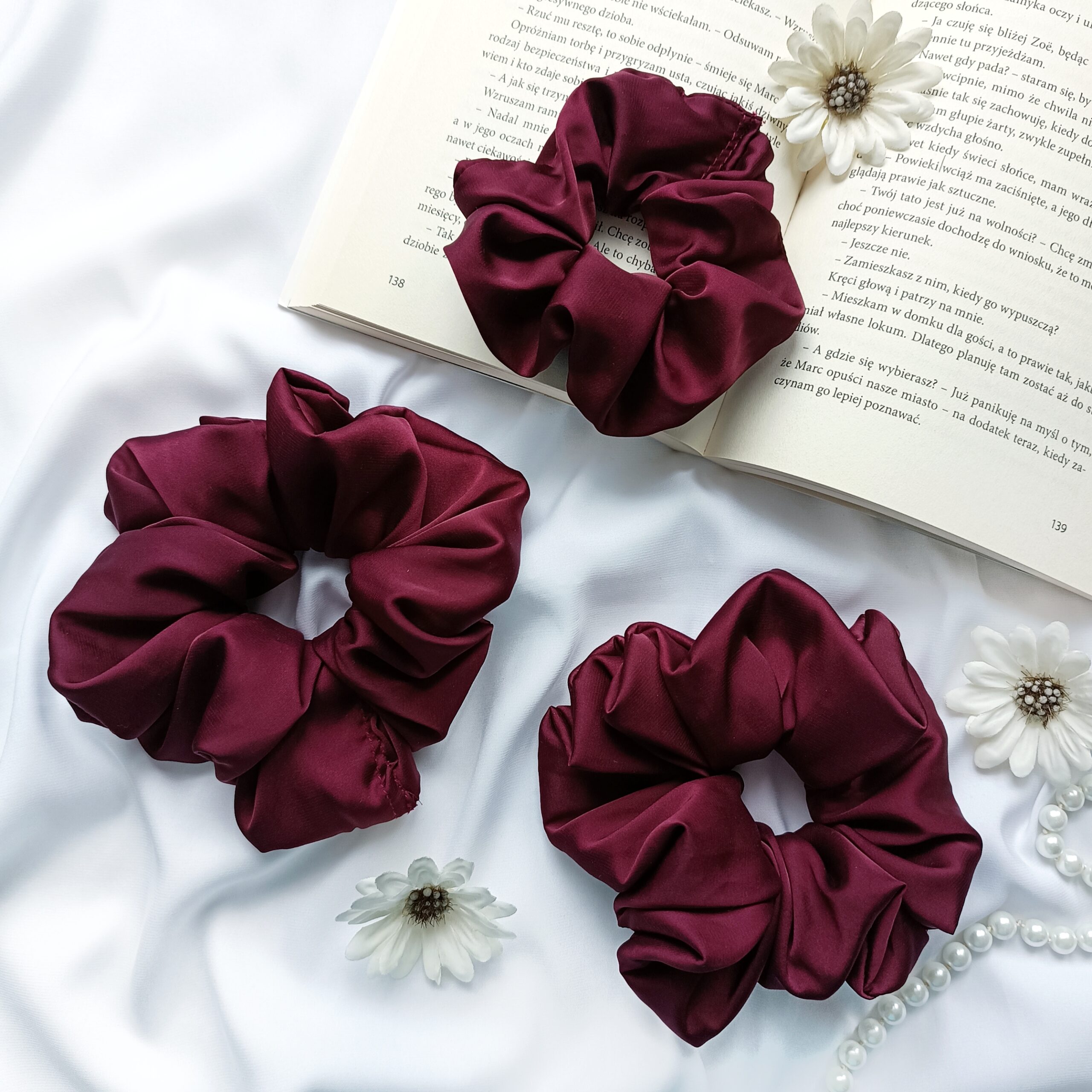 Scrunchie z satyny jedwabnej – bordowa