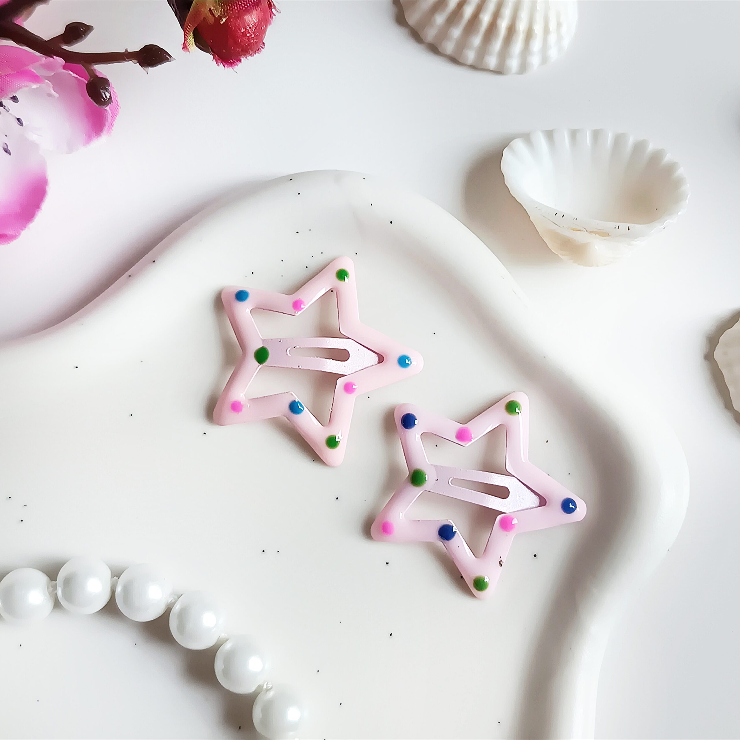 Spinki do włosów gwiazdki w kolorowe kropki – uroczy i praktyczny dodatek dla dziewczynek