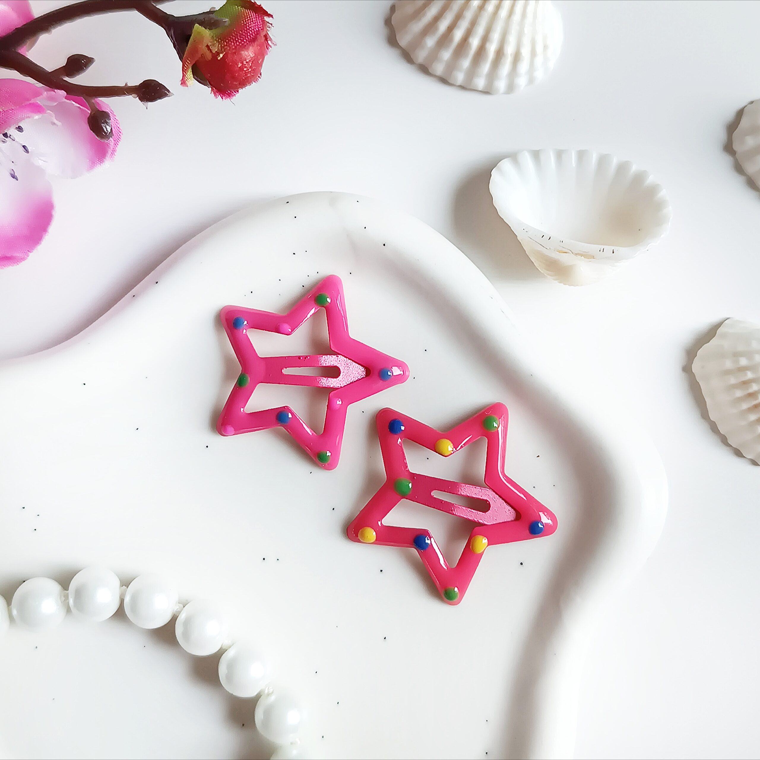 Spinki do włosów gwiazdki w kolorowe kropki – uroczy i praktyczny dodatek dla dziewczynek