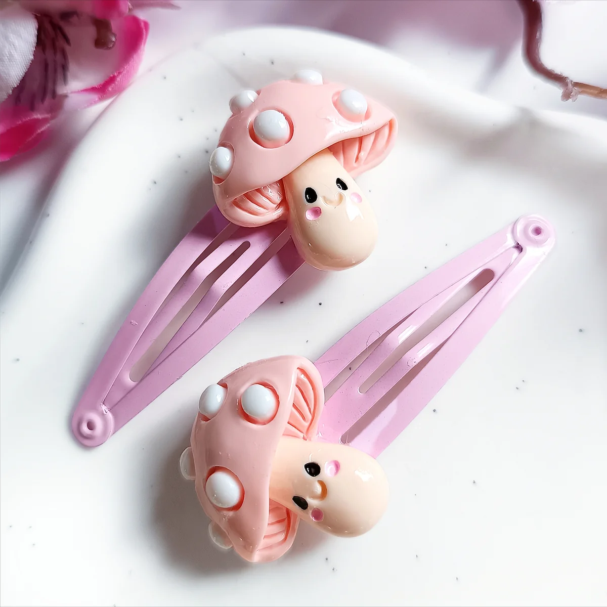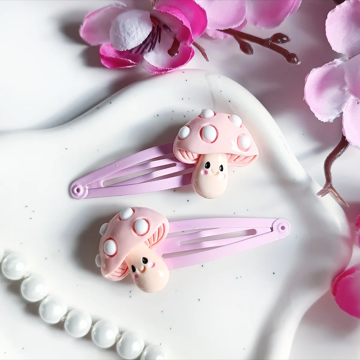 Spinki do włosów dla dzieci – jasnoróżowe grzybki