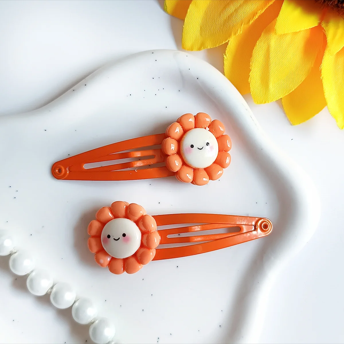 Spinki do włosów dla dzieci – pomarańczowe kwiatuszki