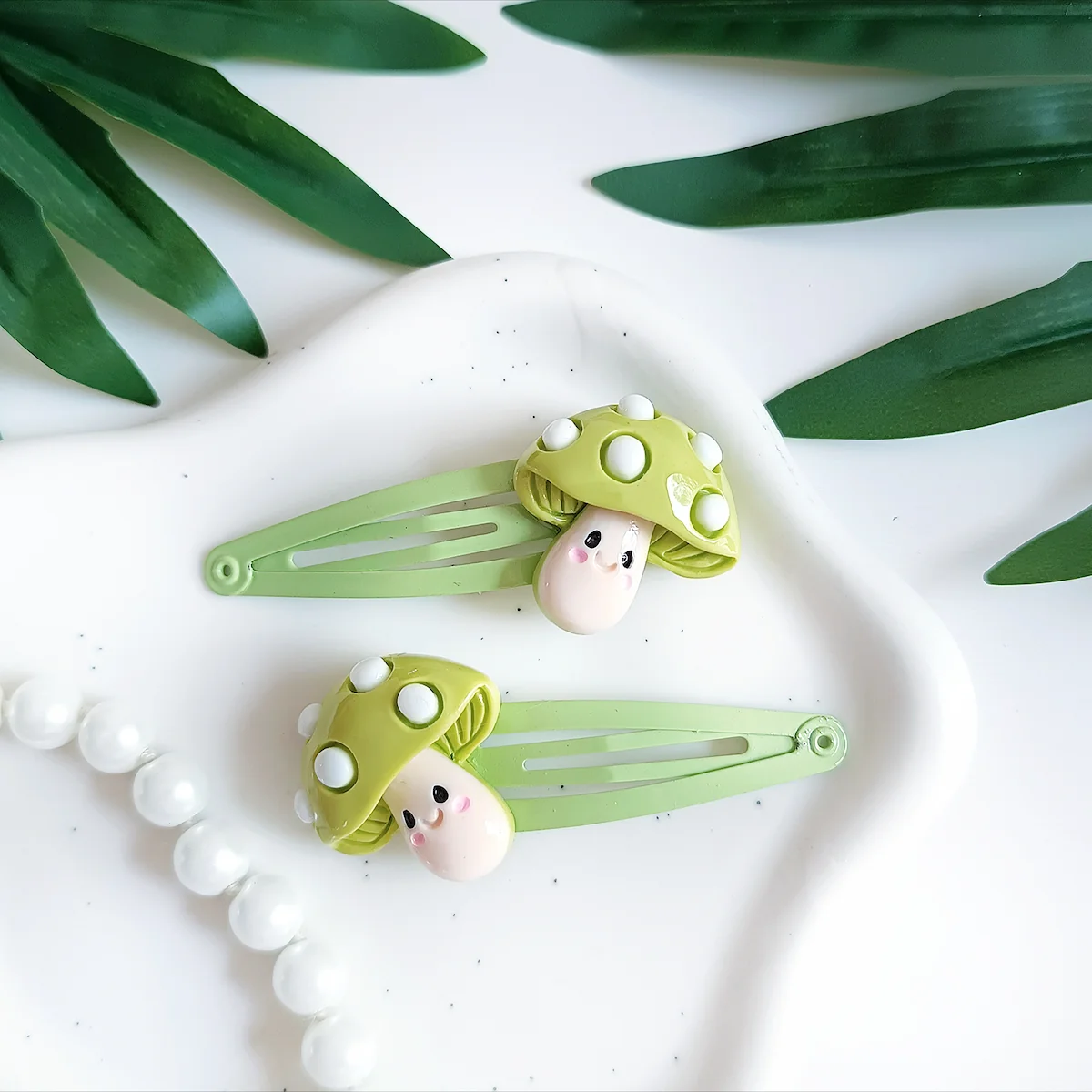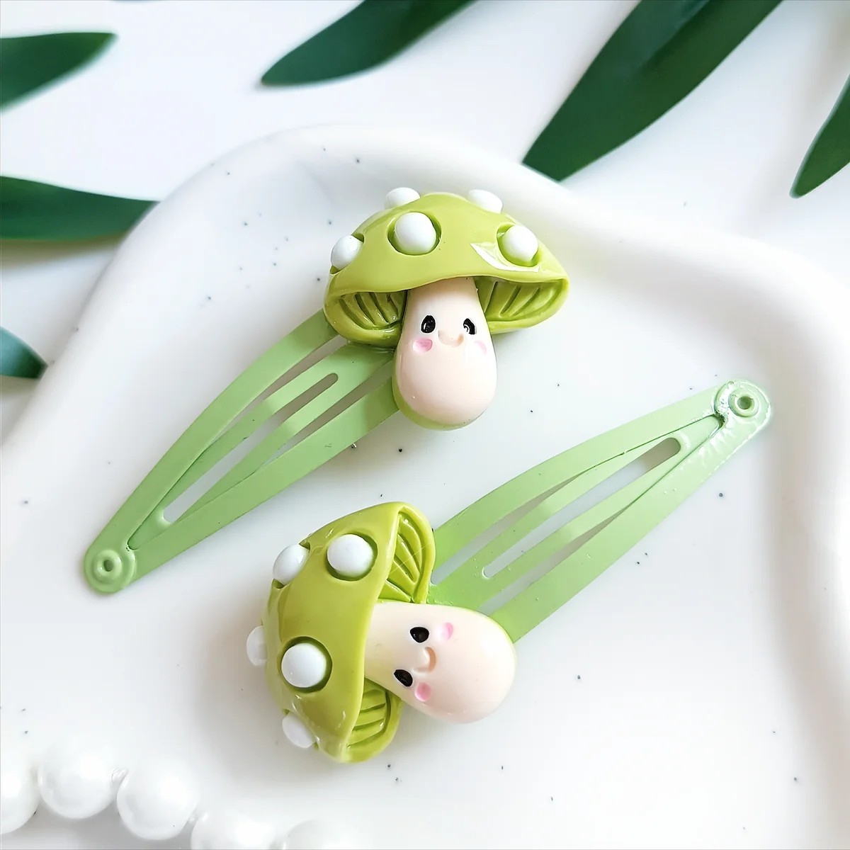 Spinki dla dzieci zielone grzybki.Spinki do włosów dla dzieci – zielone grzybki
