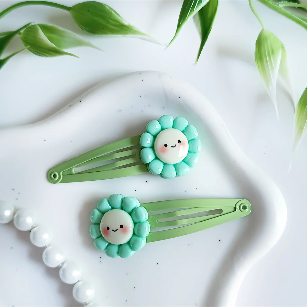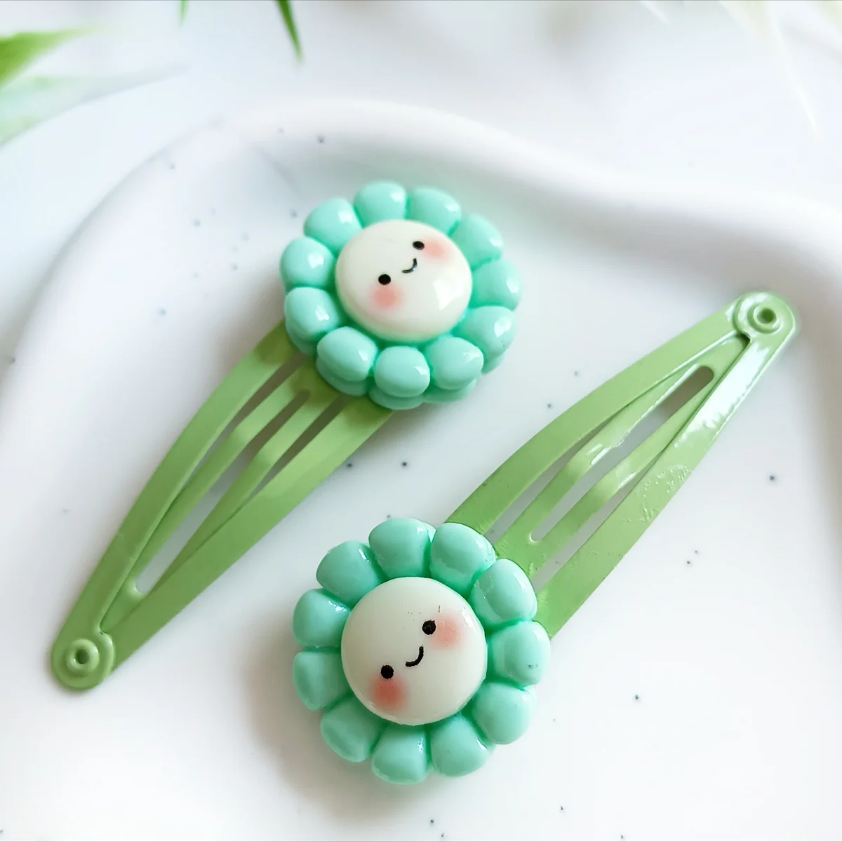 Spinki dla dzieci turkusowe kwiatuszki.Spinki do włosów dla dzieci – zielone kwiatuszki