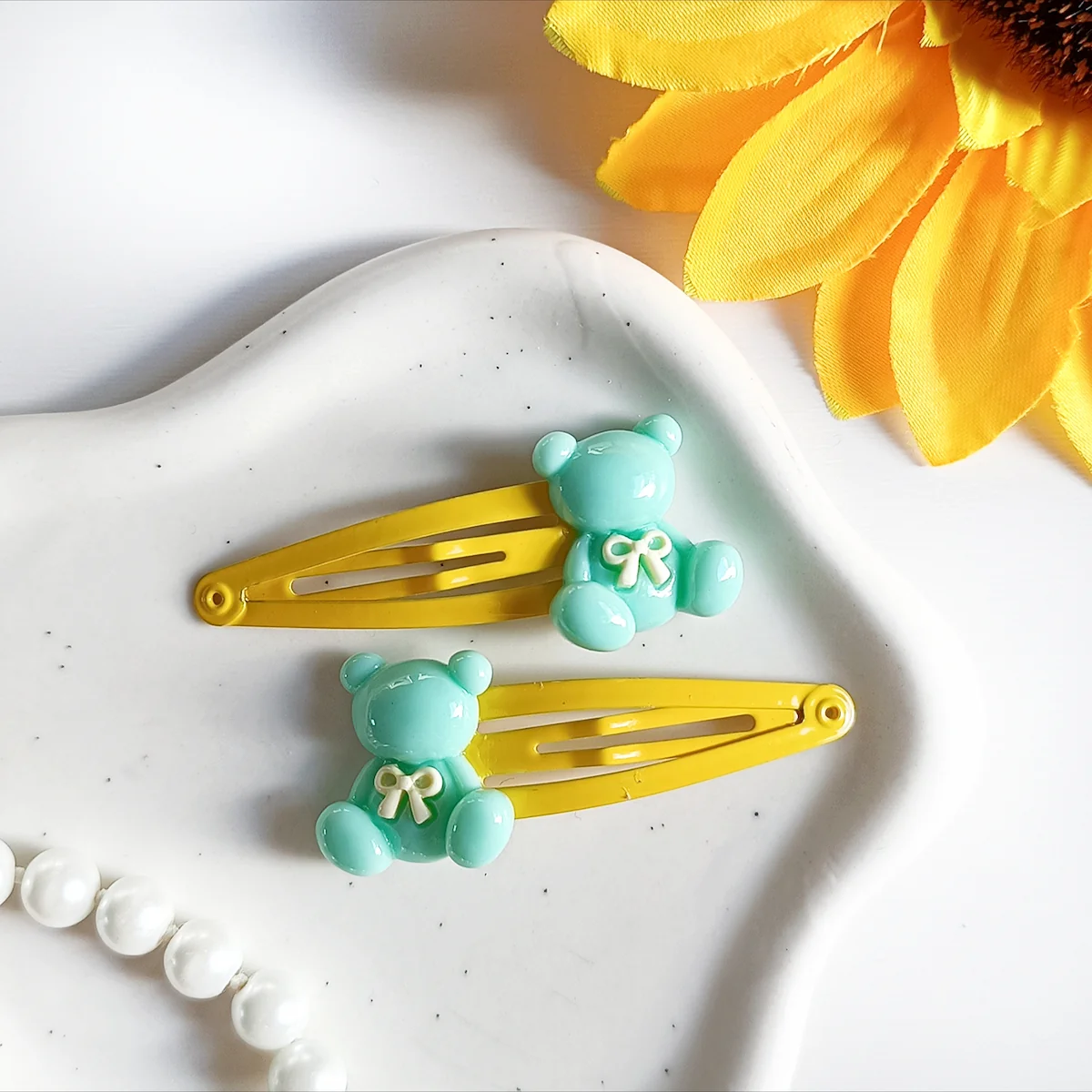 Spinki dla dzieci turkusowe misie.Spinki do włosów dla dzieci – zielone misie