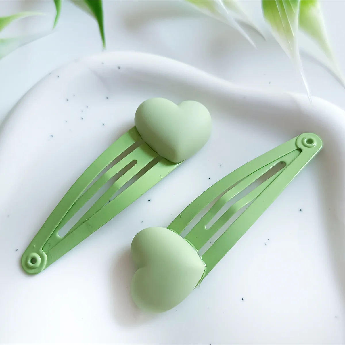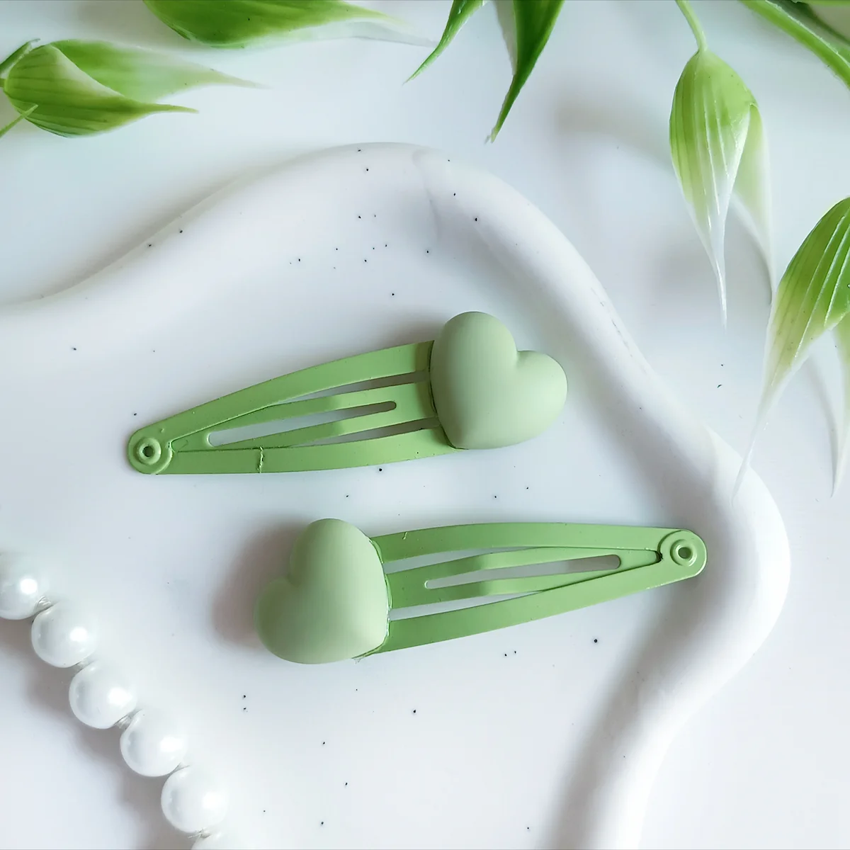 Spinki umieszczone są na lekkiej i wygodnej bazie typu klik-klak, dzięki czemu łatwo się je zakłada i zdejmuje. Jednocześnie dobrze trzymają włosy, pomagając utrzymać fryzurę przez cały dzień – bez ciągnięcia i bez dyskomfortu.