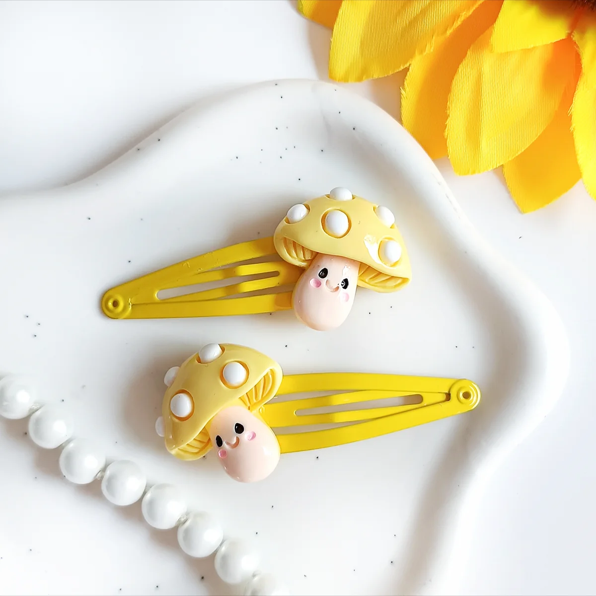 Spinki do włosów dla dzieci – żółte grzybki