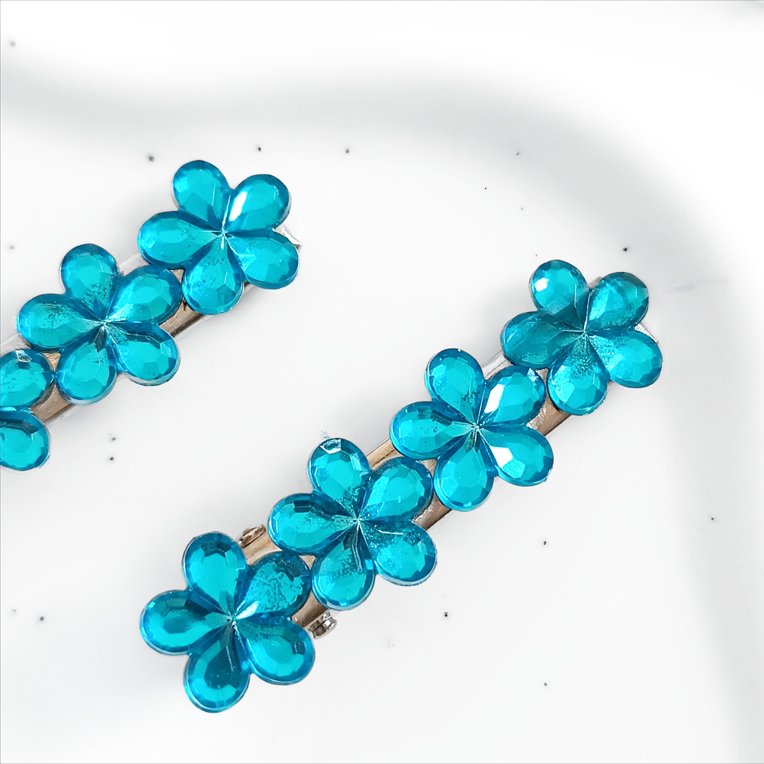 Duże spinki do włosów z cyrkoniami 2 sztuki – kwiatki