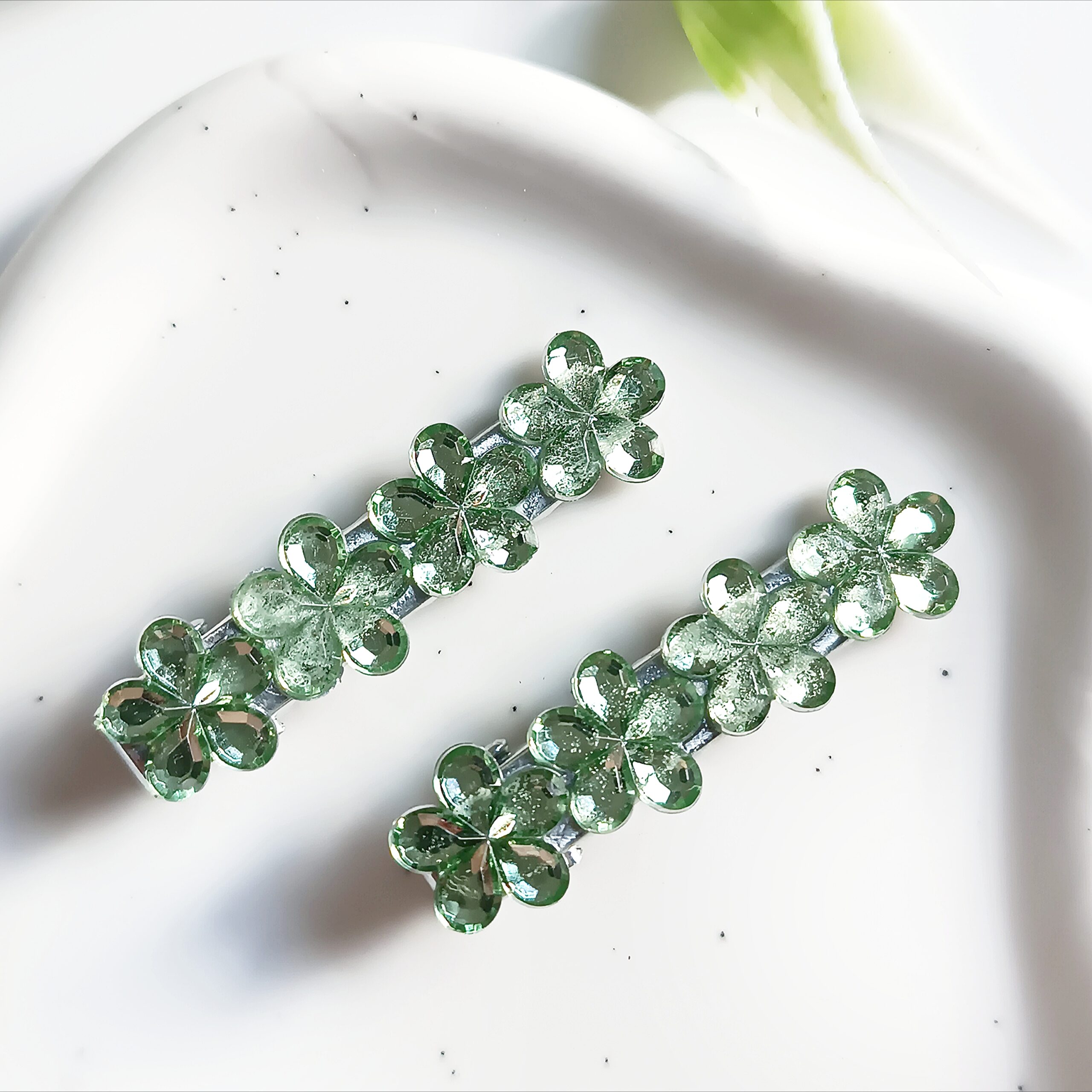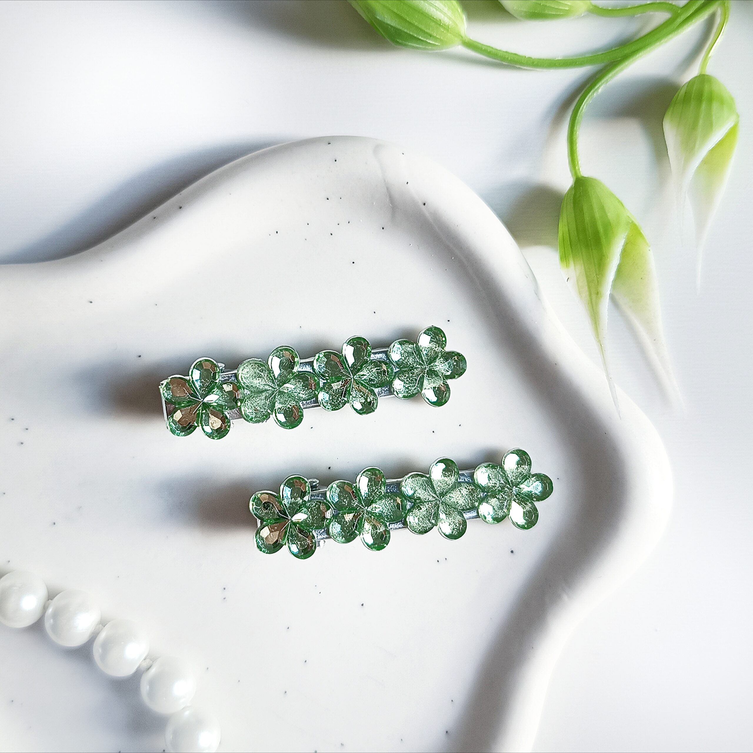 Zestaw spinek do włosów – jasnozielone kwiatki