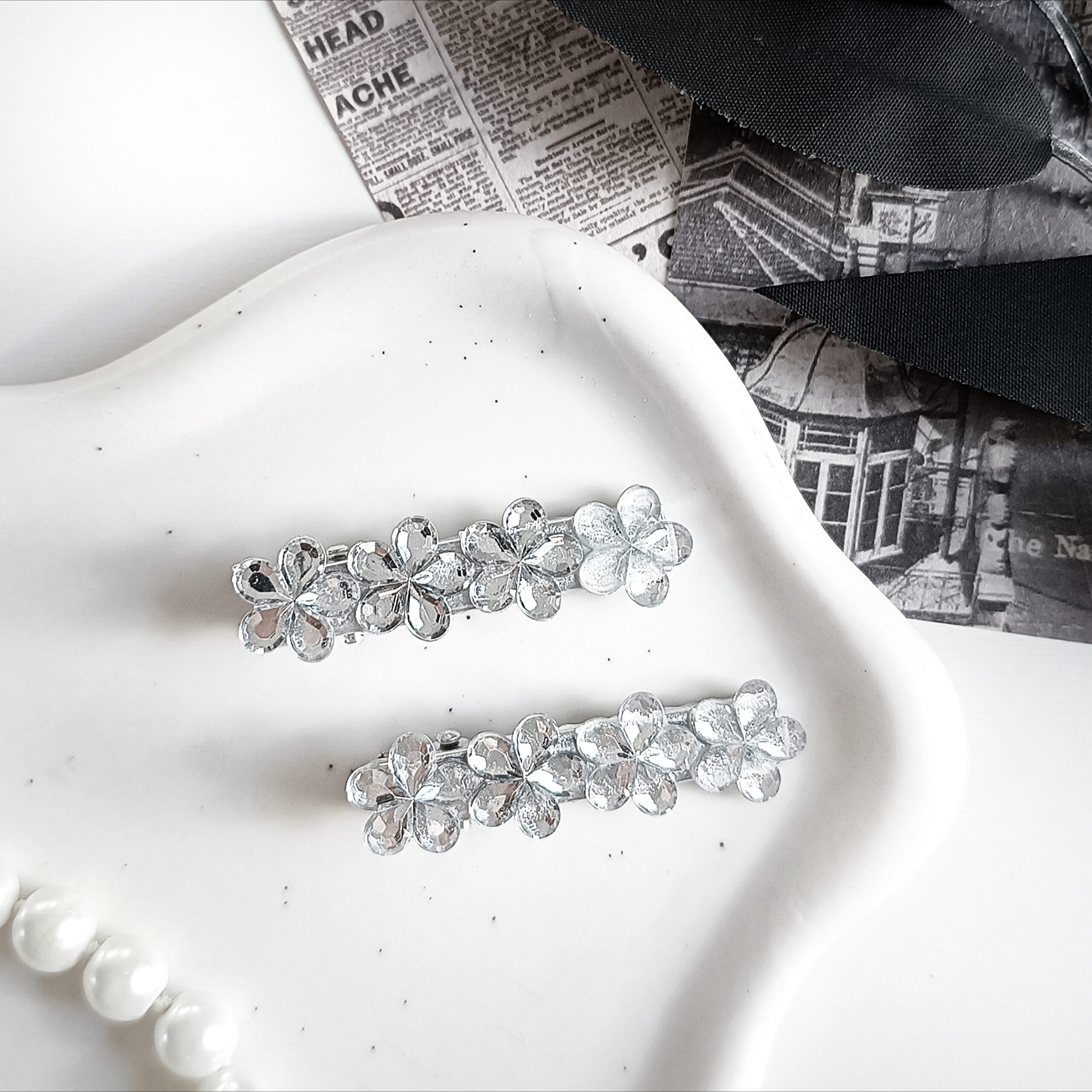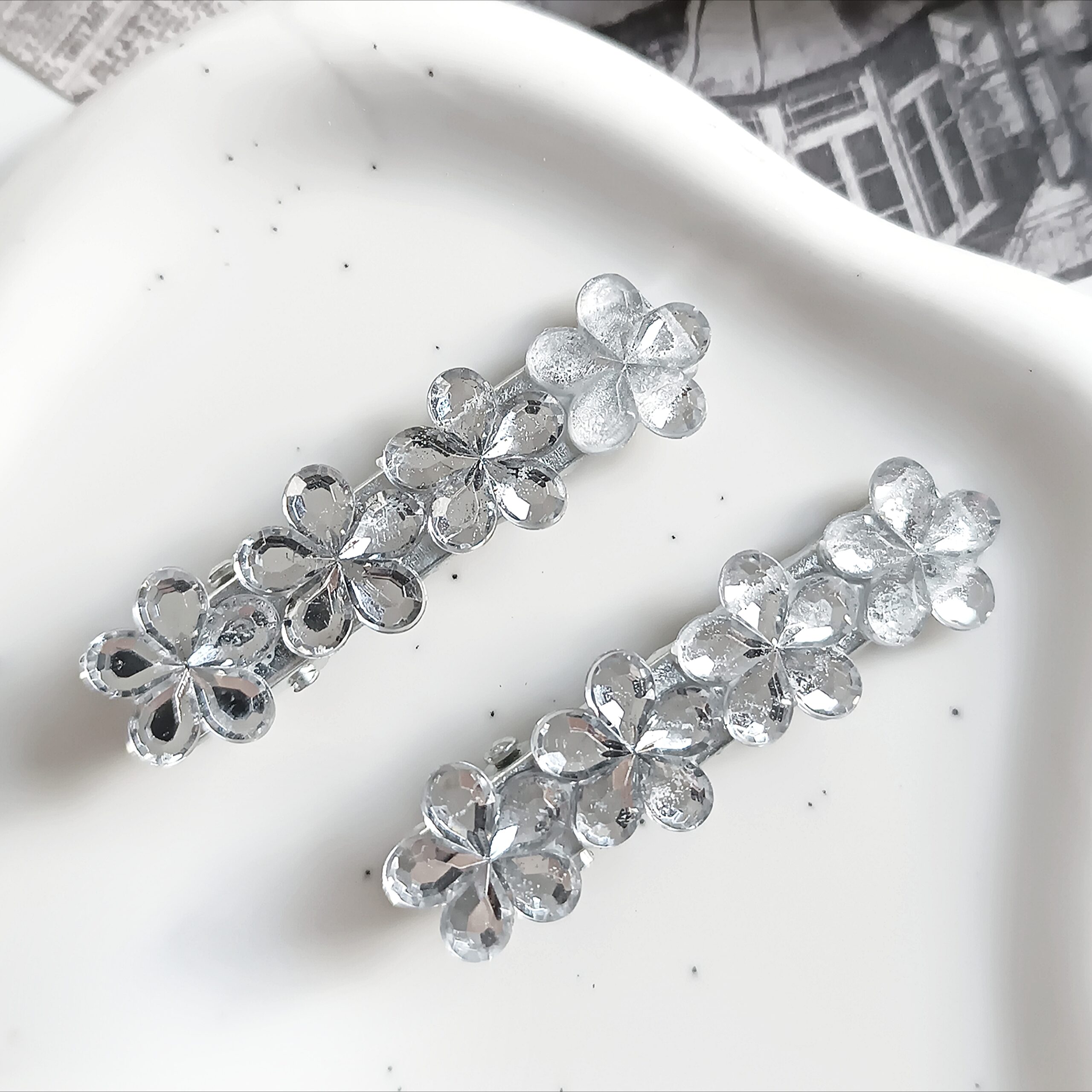 Duże spinki do włosów z cyrkoniami 2 sztuki – kwiatki